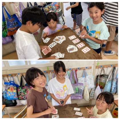 友達と話しているグループやトランプでスピードの勝負、腕相撲などをしていました。