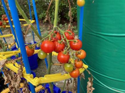 トマトがたくさん赤く実っています。