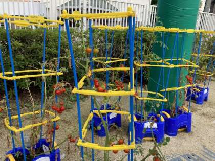 休み時間に収穫したり、水をあげたりしています。