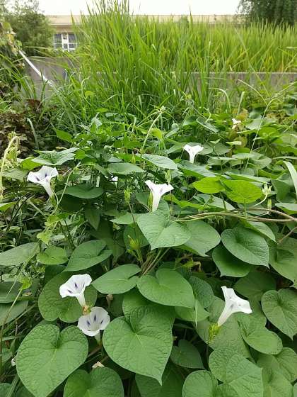 水田の下の草むらで、つるを伸ばし咲いていた。