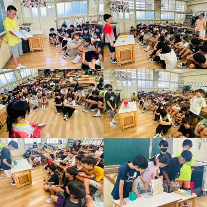 夏休みの自由研究や貯金箱の発表では、発表者に自分の感想を伝えたり、工夫を凝らしたゲーム性のある貯金箱に実際にお金を入れてみたりと、みんなで楽しい時間を過ごすことができました。