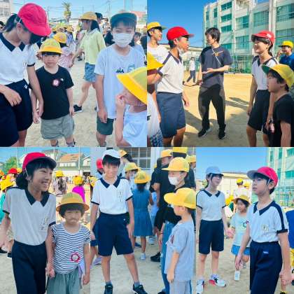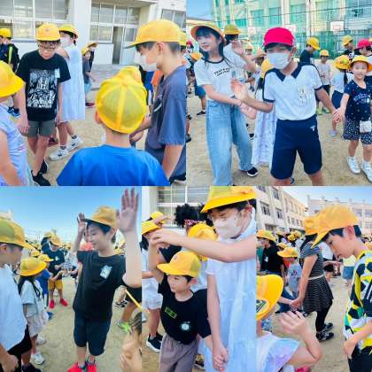 1年生と一緒に手を合わせて卵の形をつくったり、鳥やうさぎ、怪獣になって移動したり、とても無邪気な6年生の姿を見ることができました。