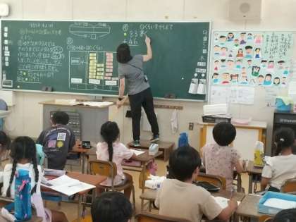2年生が、算数で2けたのたし算の計算の仕方を考えていました。