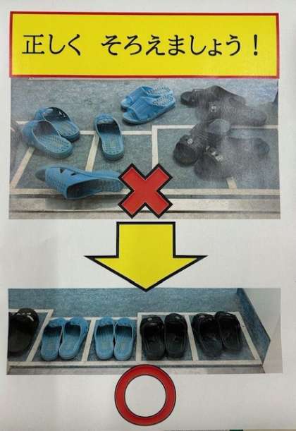 みんなで使用する学校のトイレは、昨年度改修工事を終え、ドライトイレとなりました。床に水を流せないタイプのトイレです。そのため、スリッパをはいて入るのですが、スリッパをみなさん一人一人がきちんと整えてほしいですと言った内容でした。いつもそろえている人「ありがとう!」、そんな人がたくさん増えてくれるときれいに気持ちよく使えると思います。