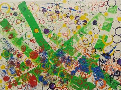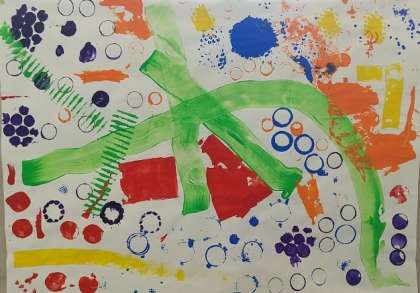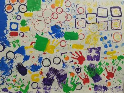 1年生が、図画工作で「ぺったん コロコロ」という造形遊びの題材に取り組みました。