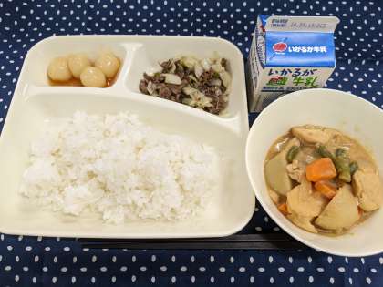 給食ではさといもを使用した煮物と、白玉だんごにみつをかけたみたらしだんごが登場しました。
