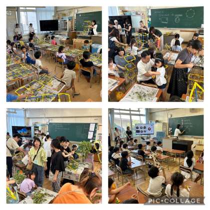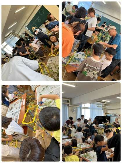 今日は、2学期最初の学習参観でした。1年生は、大切に育てたアサガオのつるを使い、リース作りをしました。保護者の方のご協力のおかげで素敵な作品ができあがりました。ありがとうございました。