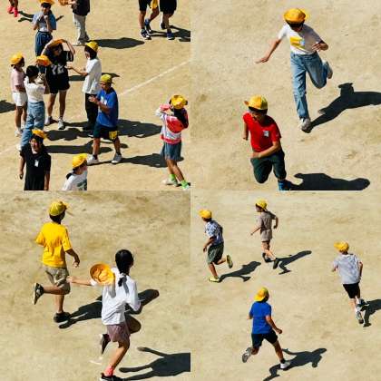 休み時間には、運動場でおにごっこを全力で楽しんでいます。