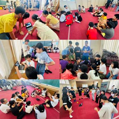 昼休みには、多目的室で運動会のダンスについて話し合っています。