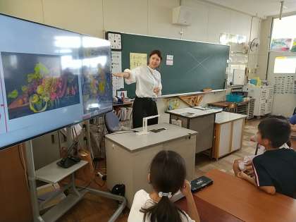 様々なタイプの美術作品のカードがありますが、3年生の子どもたちは熱心に作品を鑑賞して、自分の感じたことを友だちと交流していました。