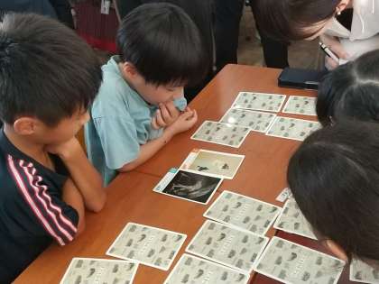 「どこがにている?ここがにている!」という題材で、4〜5人のグループで活動しました。裏向けにしたカードから2枚を選び、二つの美術作品の共通点(形や色、感じなど)をみつけグループのメンバーに説明して、同意を得られればカードをゲットできるというルールです。