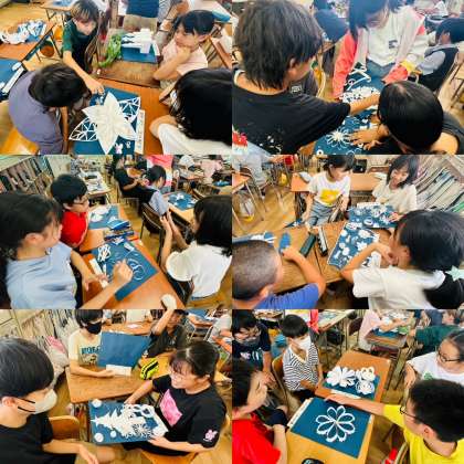 壁かざりの作品鑑賞では、友達の作品のすてきなところを伝え合いました。