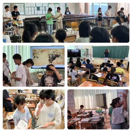 また、音楽では「ラバーズコンチェルト」の合奏の発表会をクラスで行いました。グループで楽器の種類や演奏の工夫を考えそれぞれ披露しました。どのグループも素敵な演奏でした。