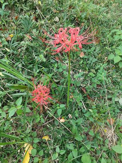 猛烈な暑さのせいで今年は咲き始めが遅いのかなと思っていたが、秋分の日の朝散歩していて、けっこうたくさん見かけることができた。毎年思うけど、本当に不思議な花。