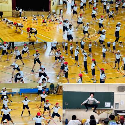 ソーラン節の練習では、腰を低く落としてかまえる、力強く船をこぐ動作をする、声をしっかり出す等、大切なことを確認しました。