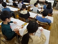 1年生の子どもたちが、絵本の読み聞かせをしてもらっていました。いろいろな国を紹介している絵本でしたが、子どもたちとても興味深そうに聞いていました。