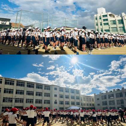 雨予報の1日でしたが、子ども達の思いが天に届いたのか、清々しい青空の下で大玉おくりや閉会式の練習をすることができました。