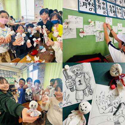 教室の背面には、かわいらしいてるてる坊主がいっぱい並んでいます。