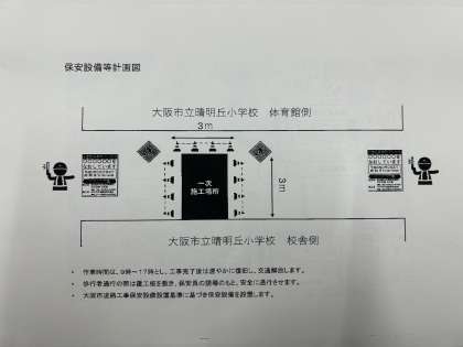 11月4日(月)体育館と校舎の間にある公道で表題の通り工事を行うとの連絡がありました。作業時間は午前9時から午後5時までです。通行にはご注意ください。詳細は、以下の画像をご覧ください。