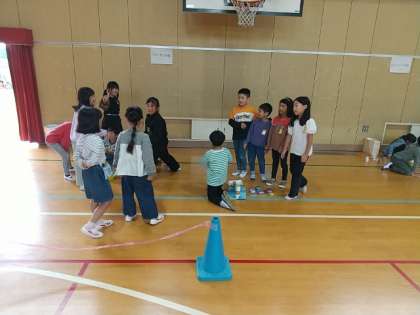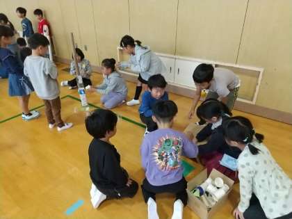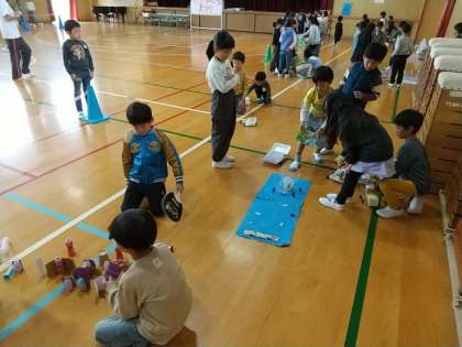 2年生が、生活の学習で作った動くおもちゃの遊びコーナーをつくって1年生を招待しました。