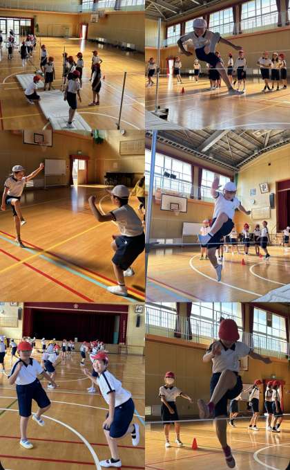 体育では、走り高跳びをしています。自分の跳びやすい歩数や歩幅を決め、より高く、より美しく跳べるように練習を重ねています!