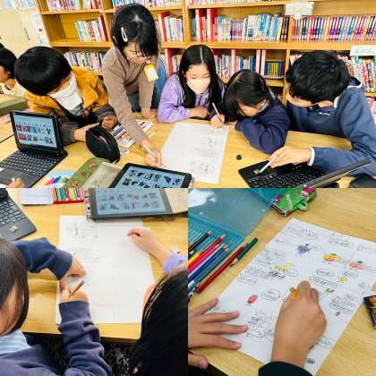 自分でストーリーを考え、コマ割りをし、工夫をしながら楽しい漫画を仕上げることができました。