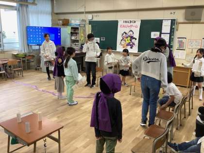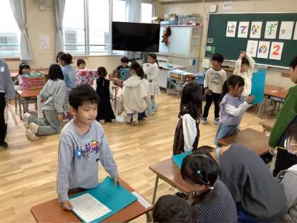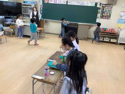 各クラスで工夫されたお店で楽しくペアと遊んでいます。