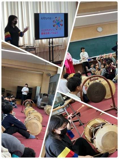 昨年も来ていただいたゲストティーに、2年生の子どもたちは、「知ってるー!」「おぼえてるー」と大盛り上がり。挨拶の言葉や、遊び・食事・衣装などの画像からのクイズや、楽器当てクイズに答える時も大興奮!