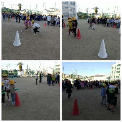 バトンを立てて歩くのはなかなか大変そうでしたが、楽しく笑顔で取り組んでいました。