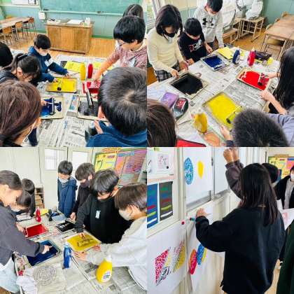 自分の思いに合った版木の形を選び、模様をデザインして彫り、色を重ねながら版を刷りました。