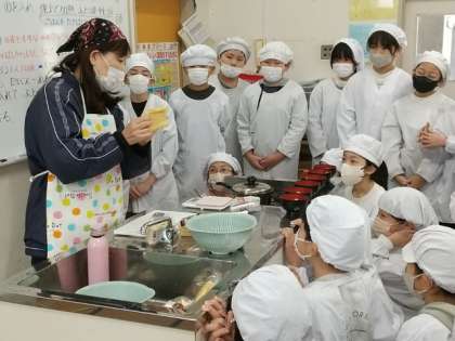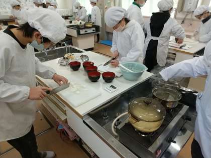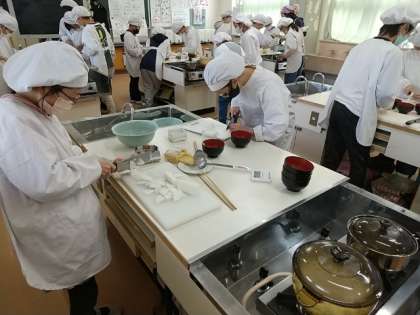 5年生が、家庭科で調理実習をしました。