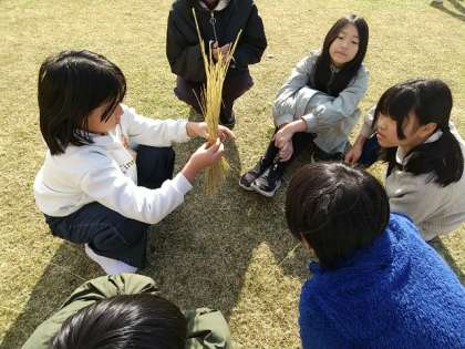 地域の園芸クラブの方に来ていただき、5年生が稲わらを使ってのミニほうきづくりに取り組みました。