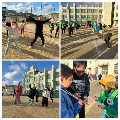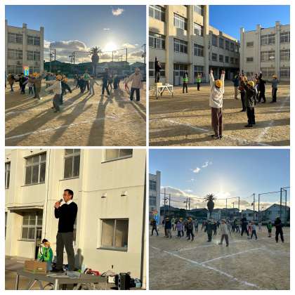 2学期最後の【みんなでラジオ体操】は、風が強くとても寒かったのですが、みんな元気にラジオ体操を行っていました。