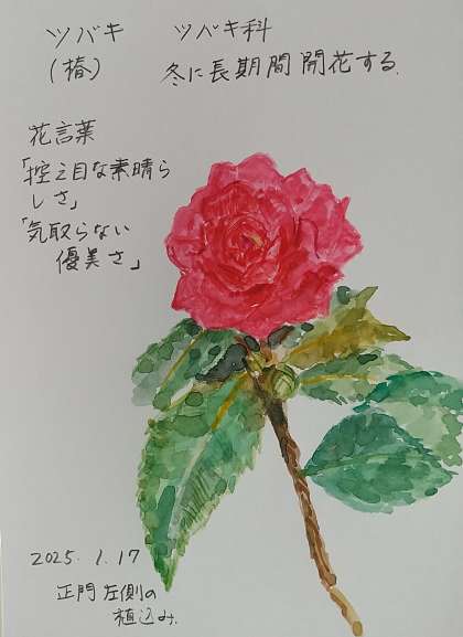 花言葉には、「控えめ」「気取らない」とありますが、濃い赤色の花弁が、寒い冬に凛とした存在感を主張している。