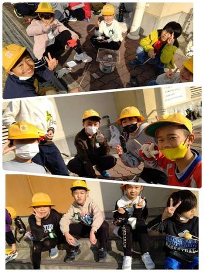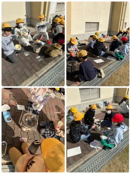 21日火曜日は、良いお天気に恵まれ、芝生広場では、3年生が学級ごとに七輪体験を行いました。