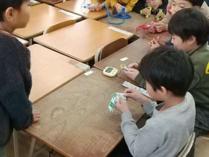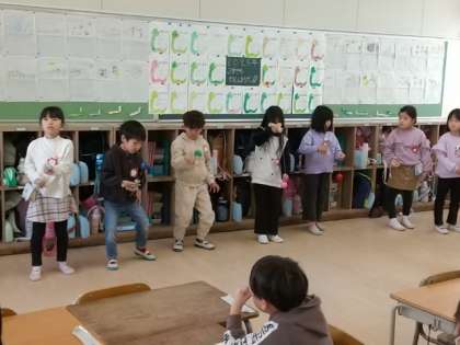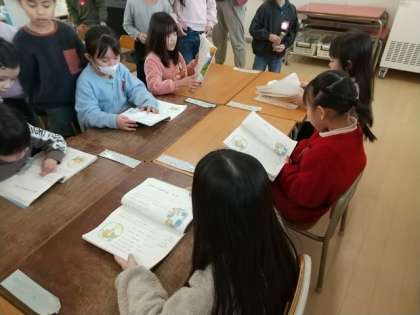 国語の本読みや算数の計算、生活の学習で教えてもらった伝承遊びなど、グループに分かれて確かめと練習をしています。