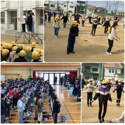 今週はぴょんぴょんタイムでした。休み時間、みんなで「ポップコーン」の曲に合わせてなわをとびます。運動委員会が準備運動をしたり技を紹介したりしてくれました。