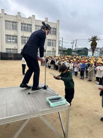 本日も表彰を行いました。絵画展や探究フェスティバルについて校長先生から、子ども達が表彰を受けました。
