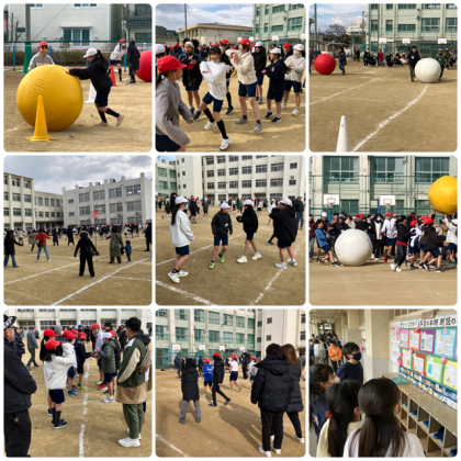 学習参観では「親子運動会」を行いました。みんなでラジオ体操を行ったり、玉入れや大玉送りなどをしたりして楽しみました。保護者のみなさま、ご参加ありがとうございました。