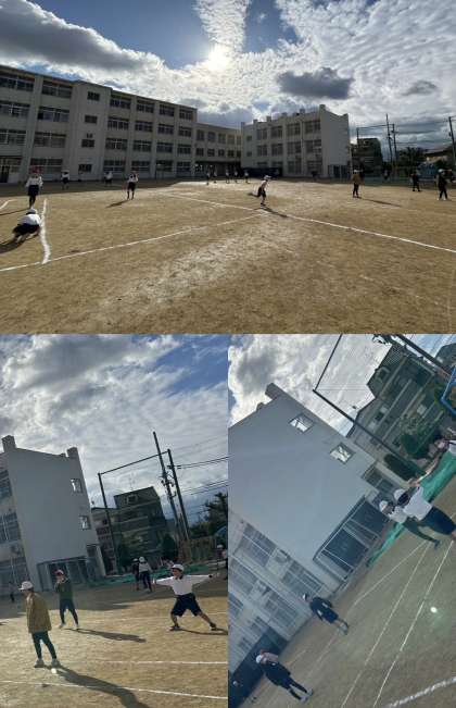 体育は、寒い中ですが外でサッカーやハードルをしています。サッカーでは友だちと協力し、ハードルでは少しでも速く走れるよう頑張っています。