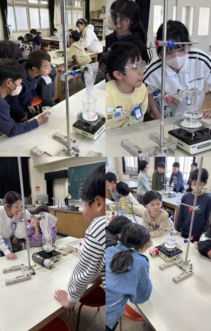 理科では、水は熱し続けるとどうなるのかについて学び、その時に出たあわの正体について実験を通して学びました。