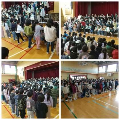 各学年からのお祝いメッセージの間、卒業する6年生は終始やさしい笑顔で、時には手拍子を合わせたりしながら素敵な表情を見せてくれました。
