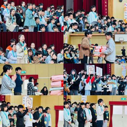 6年生クイズをしたり、校長先生と一緒にジャンケンをしたり、晴明丘小学校のみんなで「最高到達点」を歌ったり、楽しい時間を過ごしました。