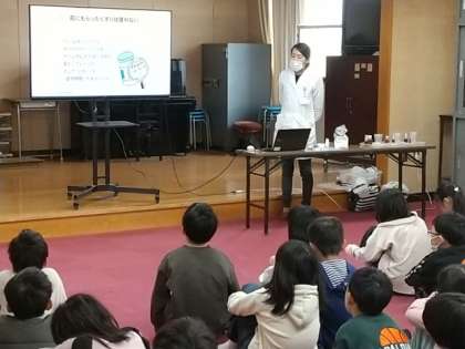 学校薬剤師の先生に来ていただき、5年生で「くすりの使い方講座」を実施してもらいました。