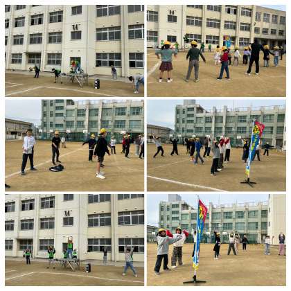 運動場の横の給食調理室前から調理員さんも参加して下さっていました。
