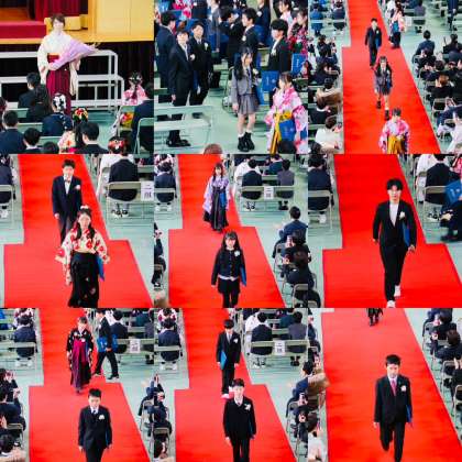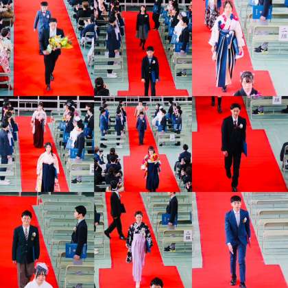 退場は、1秒でも長く自分たちの晴れ姿をみなさんに見ていただくため、「前を歩く友達との間をあけ、笑顔でゆっくりと歩くこと」を事前に約束していました。