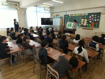 晴明丘小学校の先生方が、絵本を読んだり楽しいお話をしてくださったり、とてもやさしく接していました。