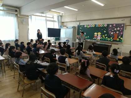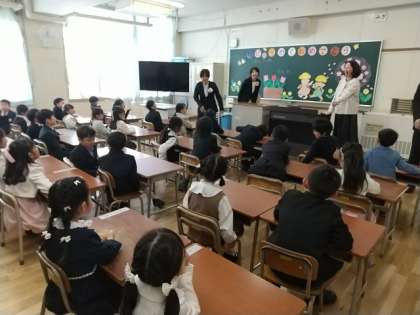 入学式後の保護者説明会の間、1年生の子どもたちは、教室で過ごしました。
