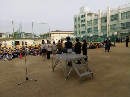 始業式に続き、転入された教職員の着任式があり、6年生代表児童の歓迎の言葉がありました。