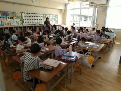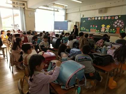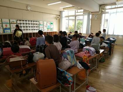 1年生の教室では、まずランドセルの場所を確認したり、ロッカーの使い方などを確認していました。